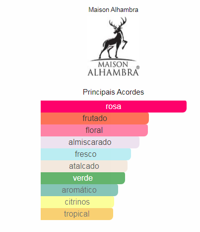 Delilah de Maison Alhambra é um perfume Floral Frutado Feminino. Delilah foi lançada em 2023. As notas de topo são: Ruibarbo, Lichia e Bergamota. As notas de coração são: Rosa Turca, Peônia e Lírio. As notas de fundo são: Almíscar Branco, Cashmeran e Baunilha.